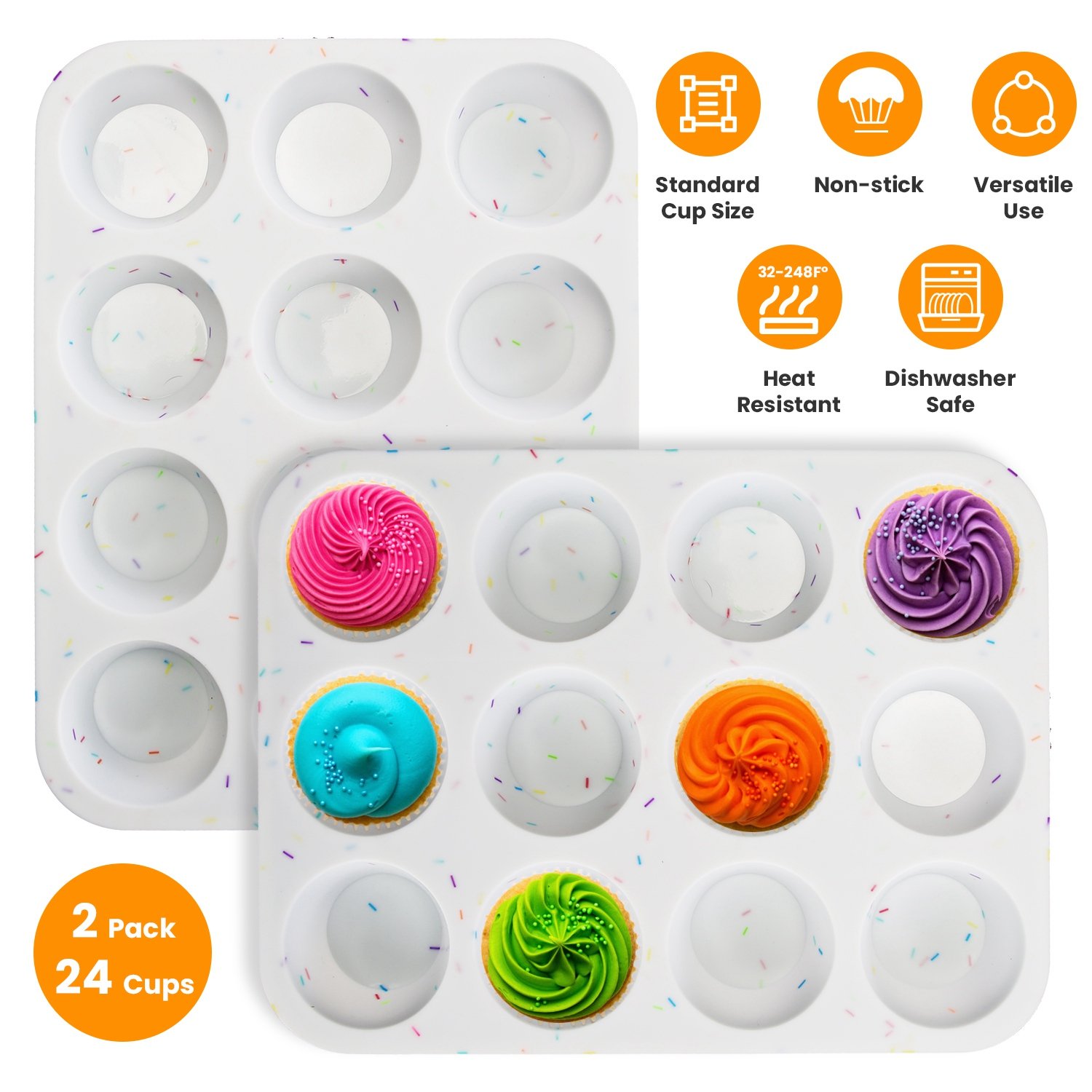 2 Pack 12 Cups Silicone Muffin Pans Nonstick Cupcake Tins Trays Regular Size Cupcake Molds Heat Resistant Oven Microwave Fridge Freezer Dishwasher Saf