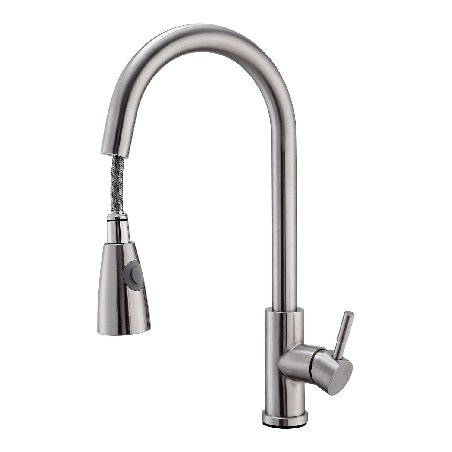 Home > Kitchen Faucets Single Handle Kitchen Sink Faucet Brushed Nickel Stainless Steel Pulldown Head Faucet w/Flexible Pullout Sprayer