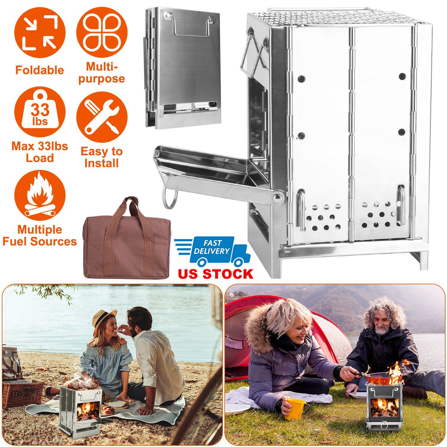 If you are looking for a portable and powerful stoves for your camping, hiking, backpacking, mountaineering, fishing, and picnics, etc.. Our foldable camping stoves with portable carry bag may meet your demands. Made from heavy-duty stainless steel materials, our stove is high tough, anti-corrosion, rust-proof, high temperature resistant, strong load capacity and anti-slipping and can fit for pots or pans with diameter bigger than 5.5inches.