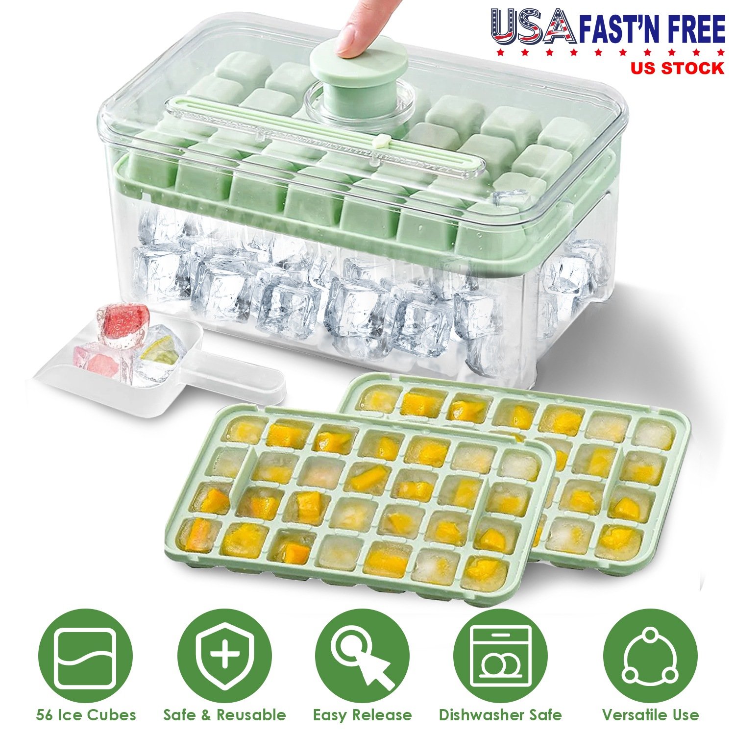 Home > Ice Cube Tray With Lid And Bin Plastic Ice Trays Pop Ice Mold 2 Ice Cube Trays with Scoop Easy Release Stackable Dishwasher Safe Produce 56 Ice Cubes