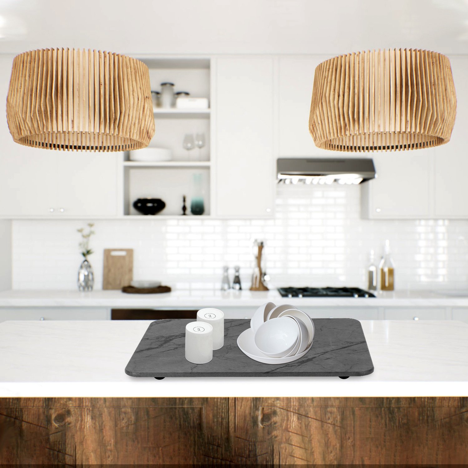 Constructed with premium diatomaceous earth with exceptional absorbency, our stone dish drying mat is able to absorb residual water on the tableware and quickly evaporate water from the surface in about 30S, keeping the sink area clean and tidy. Come with 2Pcs in package, non-slip and heat resistant up to 1000℃/1832℉, widely used for dish rack mat, stone bath mat, hot pot pad, pet feeding mat etc.. Feature marble texture and 11.81x15.75in large size, suitable for most kitchen ware and tableware. Easy to clean. An considerate gift for wife, girlfriend and mother!