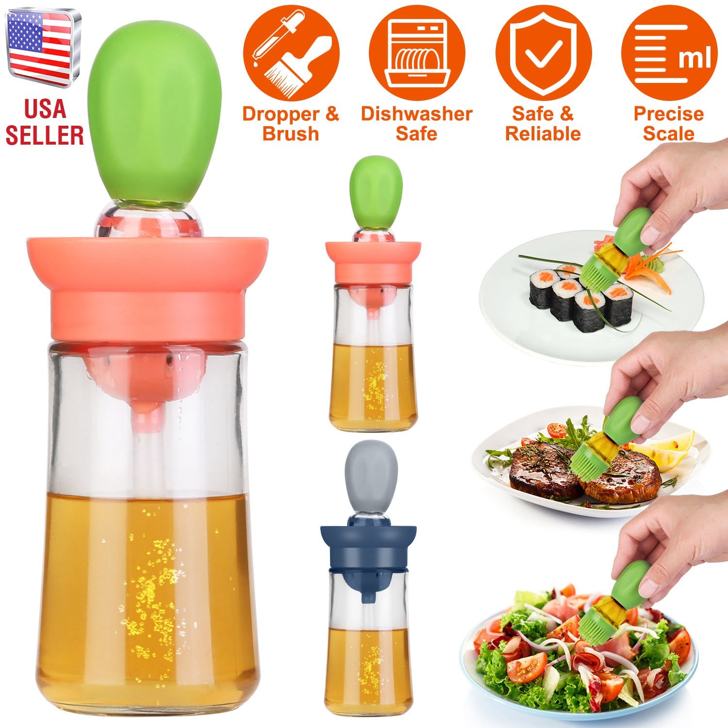 Home > Oil Dispenser Bottle 2 In 1 Cooking Glass Olive Oil Dispenser Silicone Dropper with Silicone Brush Dropper Measuring Container for Kitchen Baking BBQ