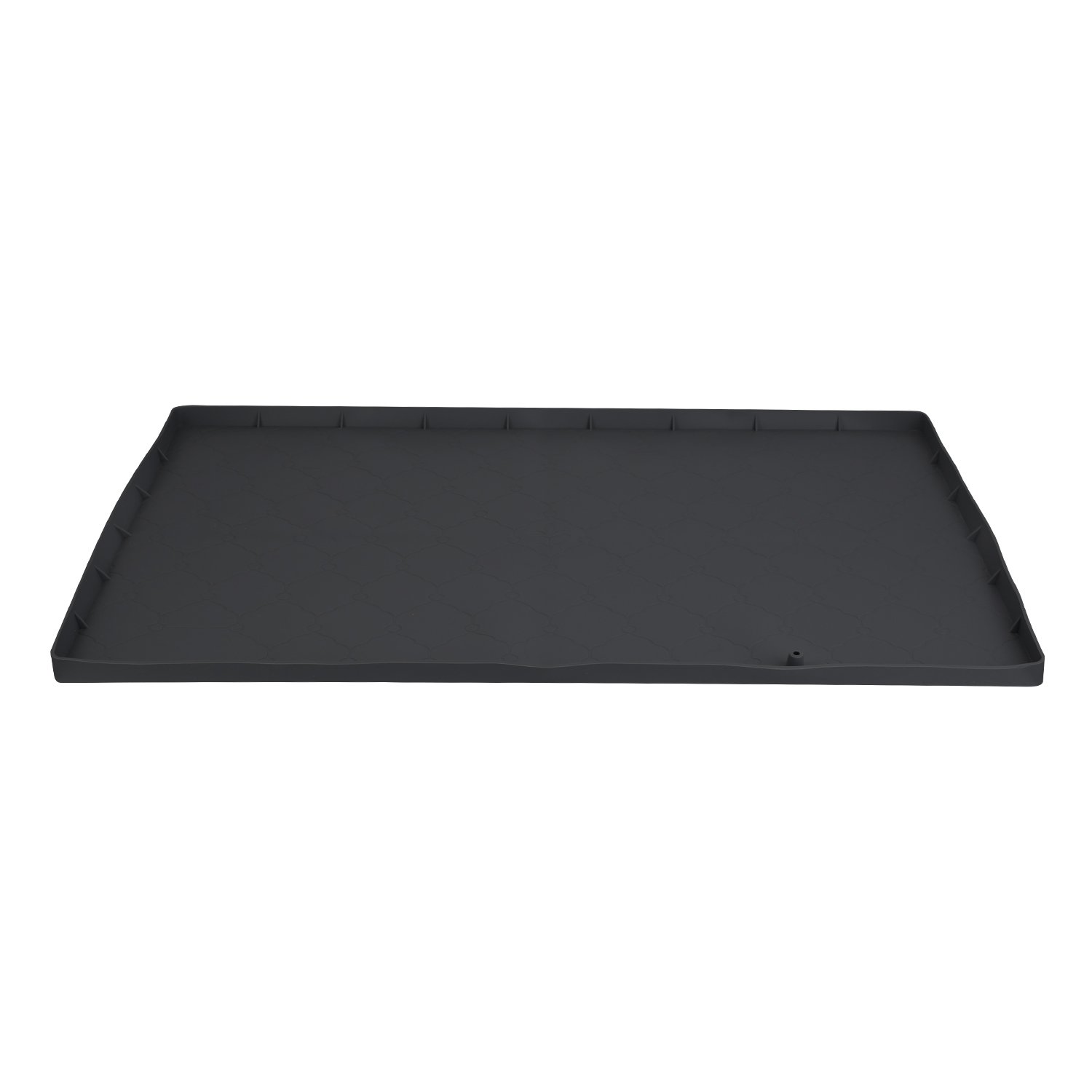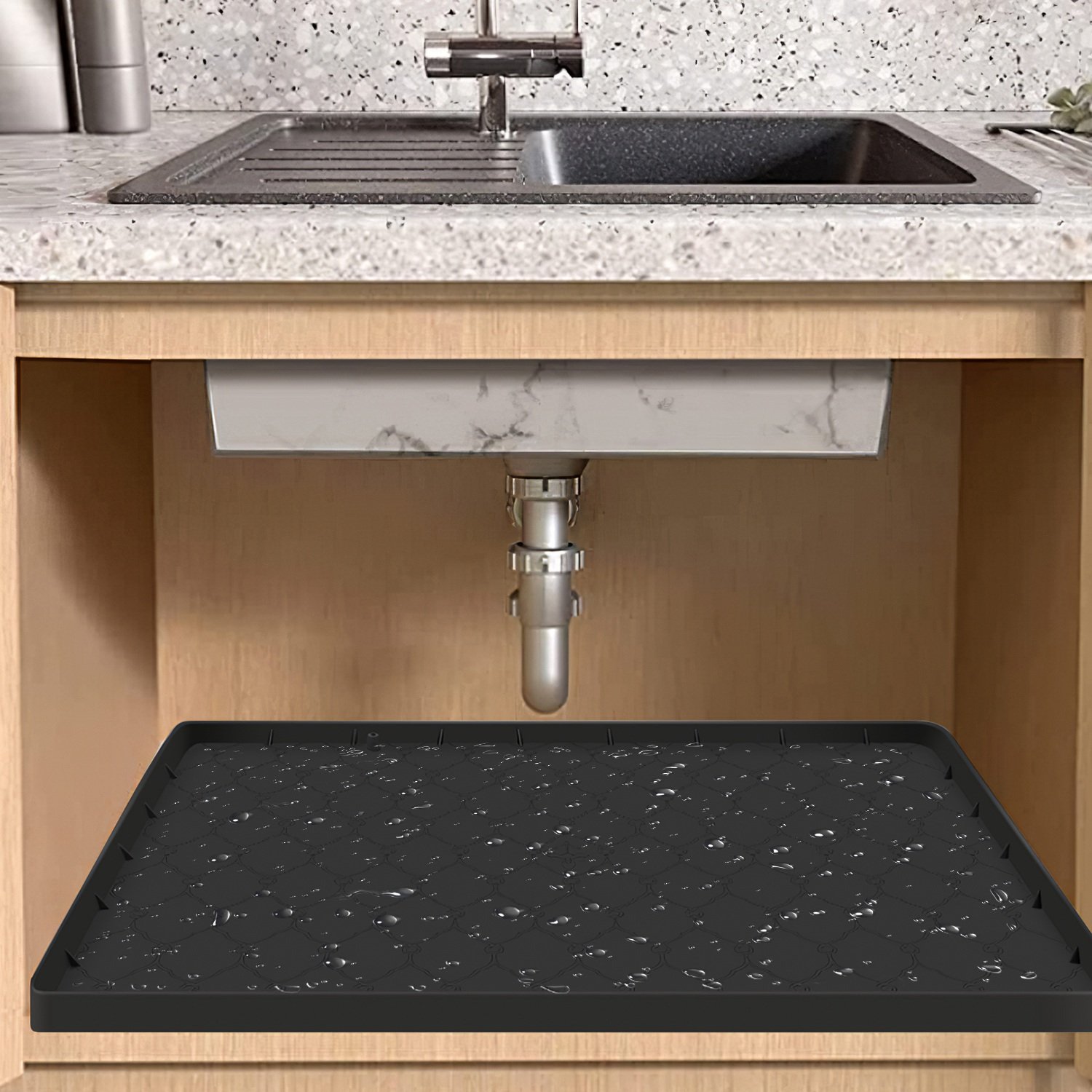 Made of environmentally friendly silicone, our under sink mat provides a secure and slip-free area for you to place your cleaning supplies or kitchen tools without slipping or sliding. Also, water or spills will be effectively contained, reducing the risk of damage to your cabinets. Holds up to 3 gallons of liquid and fits for standard 36-inch kitchen and bathroom cabinets. Also comes with a drain hole to allow for quick and efficient drainage. Easy to clean.Also suitable for pet feeding mats, access door mats, tool mats, craft mats or any other occasions to avoid mess and spills.